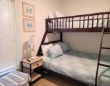 Bedding: 2 Masters with king size beds and private baths, one guest room with a king and the hall bath steps away and the 4th bedroom has a Queen bed with a twin bunk bed overhead. This room is just a sleeping room, it has a closet and TV but is very small, a little quiet retreat for kids.